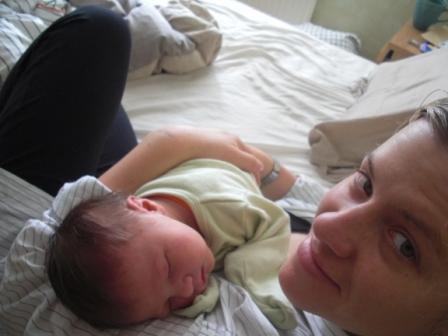 Ekkor már úgy gondoltam, hogy felteszem a Hypnobabies CD-ket, amikkel az elmúlt 4 hónapban gyakoroltam. Úgy 9-ig ezt hallgatva relaxáltam, és magunkra és a légzésemre figyeltem. Majd megkértem a Richardot, hogy hívja fel a Szülés Központot, hogy mi a teendő. Azt mondták, hogy mivel a magzatvíz elment menjünk be.