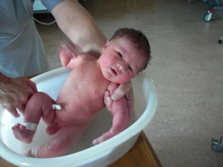 Kb 11-kor bejött a szülésznő, megviszgált, azt mondta, hogy 2 cm-re vagyok kitágulva. Ami kicsit elkeserített, mert úgy éreztem nagyon sűrűn jönnek a fájások. De a Richarddal tele eresztették a kádat meleg vízzel, és fél óra múlva ott folytathattam a vajúdást. Ekkor már a hypnobabies CD-re nem tudtam nagyon koncentrálni, viszont a nő megszokott hangja és a háttér zene megnyugatott a meleg víz meg maga volt a megváltás. Itt vajúdtam úgy 3-ig, addig óránként jöttek, nézték a baba szívhangját és minden jó volt. Én mélyen lélegeztem és kinyíló dolgokra koncentráltam (mint rózsa, lufi, alagút) ahogy tanultuk, néha kinyitottam a szemem, ahol láttam, hogy Richard bóbiskol…:-) Néha hallottam, ahogy megkérdezik őt, hogy hány percenként jönnek az ÉN fájásaim erre ő mindig azt mondta, hogy “még mindig úgy 5-6 percenként. Honnan is tudta volna, hogy szinte már össze érnek, én csak azt tudtam, hogy úgy 40-50mp-ig tartanak, mert ezt még követtem az órán.
