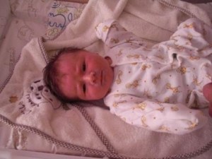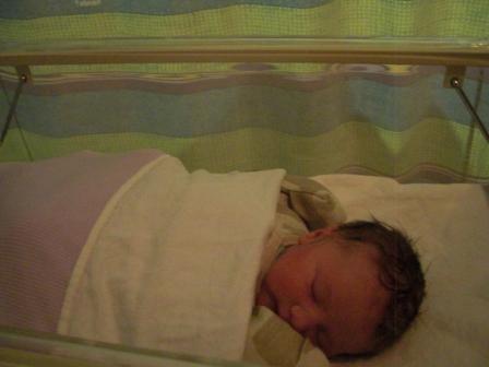 A negyedik nekifutásra csukott szemmel nyomok, amikor jobbról hallom, hogy Richard annyit mond, hogy “WOW”. Kinyitom a szemem, és az érzéketlen hasamon fehéren véresen ott van Ő!!!!. De fel is kapták gyorsan és elvitték balra törölgetni és megnézni. (itt már sírtam nagyon, Richard meg persze odaszaladt ahova Benjit vitték és megszeppenve nézte). A szülésznő bediktálta, hogy jún 15, 20.12, fiú, 4040g.