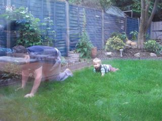 Az elmúlt héten kezdett el szabályosan mászni, de ha gyorsan kell menekülni pl az apja elől, akkor még mindig kommandózik.