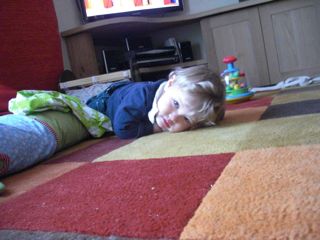 Mozgás fejlődésben nagyot lendült, mert állandóan álldogálna, húzza fel magát mindenhova, pakol le-fel az asztalról/asztalra. (a pakolászást egyébként is nagyon szereti, bármi ami üreges és belefér bármi kis dolog azzal el van, mint a csacsi a Micimackóban a lufival, imádja ki-be pakolni a kockákat egy üres dobozba)