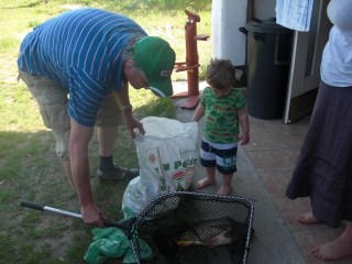 Daddy és Nagypapi horhászni volt, Daddy két ilyen nagy pontyot fogott amit persze meg kellett csodálni: