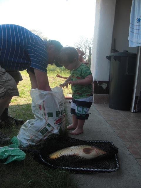 Daddy és Nagypapi horhászni volt, Daddy két ilyen nagy pontyot fogott amit persze meg kellett csodálni: