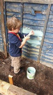 Itt most iszonyú jó időnk volt, így fogtuk magunk és lefestettük a kerítést. Benji segített, tényleg nagyon aranyos volt, és élvezte is, hogy milyen nagyfiú. Szegénykémnek a héten mandula gyulladása volt, így jó látni, hogy visszatért belé az élet.