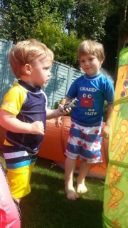 Csináltak egy kis műsort is, a Gruffalót adták elő és egy űrhajósokról szóló éneket. Ő volt az egyik félénk úrhajós. Kicsit el is sírta magát, amikor nagy lelkesen integettem neki, nem akaródzott szerepelnie, de az ovónéni megnyugtatta, én torkomban hatalmas gombóccal bátorítóan mosolyogtam rá, erre ő rám nézett és hangosan mondta, hogy “I love you Mami”. Annyira aranyos volt, hogy egyáltalán nem számított, hogy semmi szöveget nem ismételt és nem akart szerepelni.