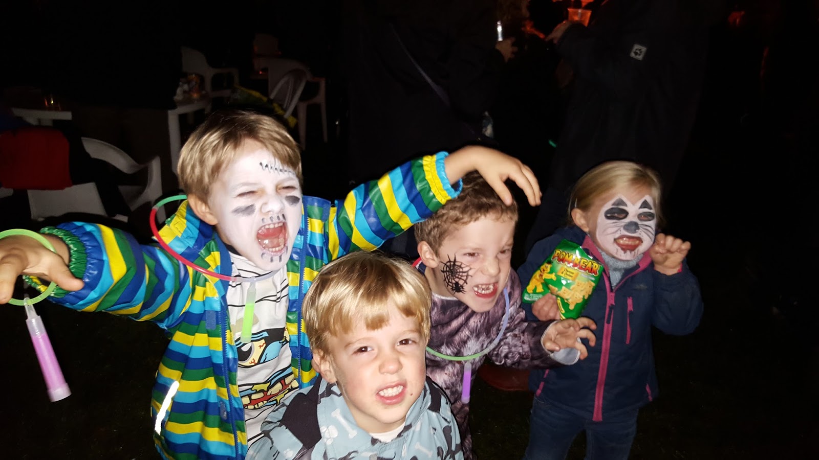 Halloweenre készülődünk, és már ott Elfordban Daisyvel és Oscarral (mondanom sem kell Robin arca azért nincs kifestve, mert ő egyszerűen nem akarta. Megmondta és kész. Neki nem kell :-))