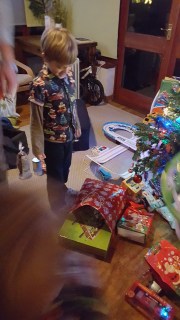 24-én csak négyesben ünnepeltünk, Jézuska hozta az ajándékokat, 25-én pedig Jaynékhez a Santa. Aztán 26-én Anyuék hozták azokat az ajándékokat, amit nálunk hagyott a Jézuska.