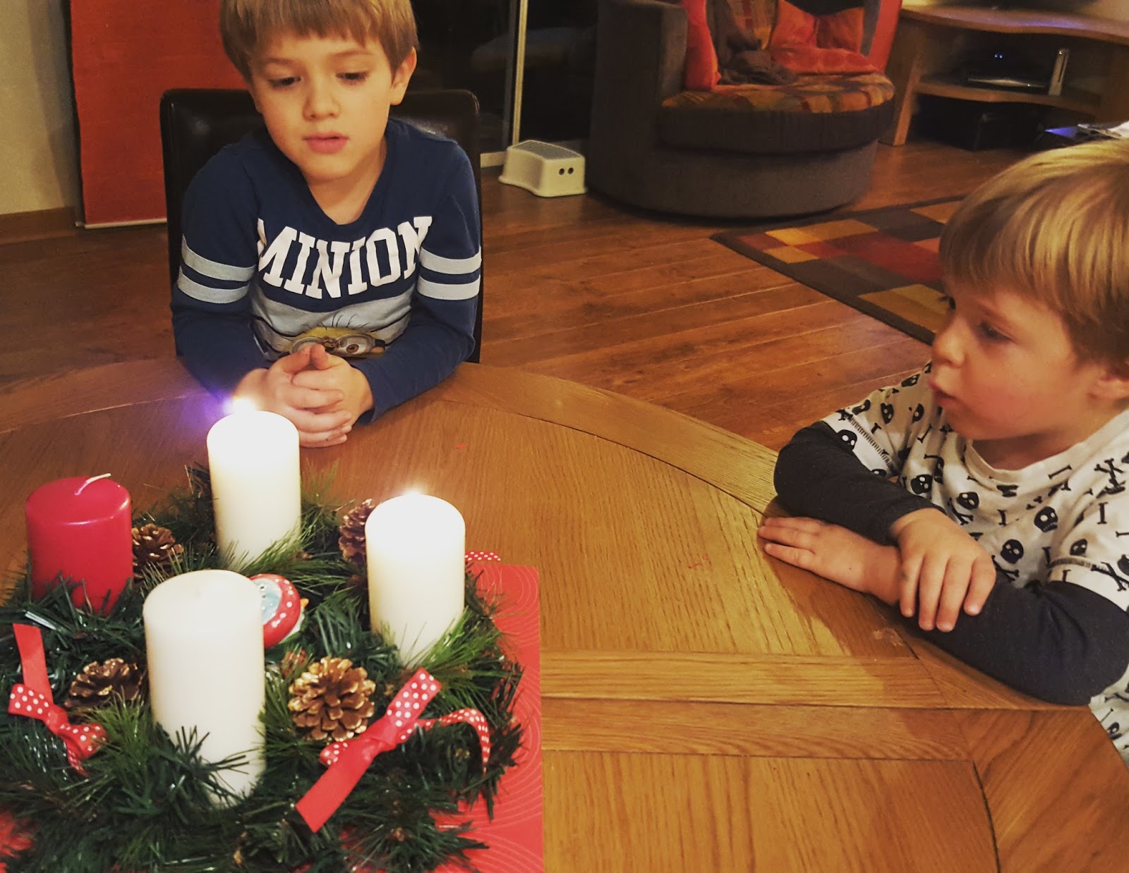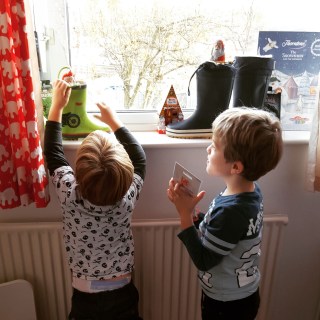 Háááát, szerintem nem sokáig tudjuk ámítani a gyerekeket a Jézuska/Mikulás hozza az ajándékot, mert még mi is belekavarodtunk sokszor….Pedig annyira édes az ártatlanságuk, ahogy lelkesen szórták a rénszarvas eledelt a füvünkre (zab, csillámpor, amit a suliban csináltak), hogy jobban lássa a Mikulás hogy hova kell jönni. Benji lelkesen díszített, be volt sózva, hogy mikor szólal meg a csengő, aztán futott le. Imádtam, ahogy látni vélte a Hold előtt elhúzni a Mikulás szánját és azt lelkesen mutatta a kisöccsének. Legszívesebben becsomagolnám ezeket az ártatlan pillanatokat, hogy maradjanak mindig ilyenek!