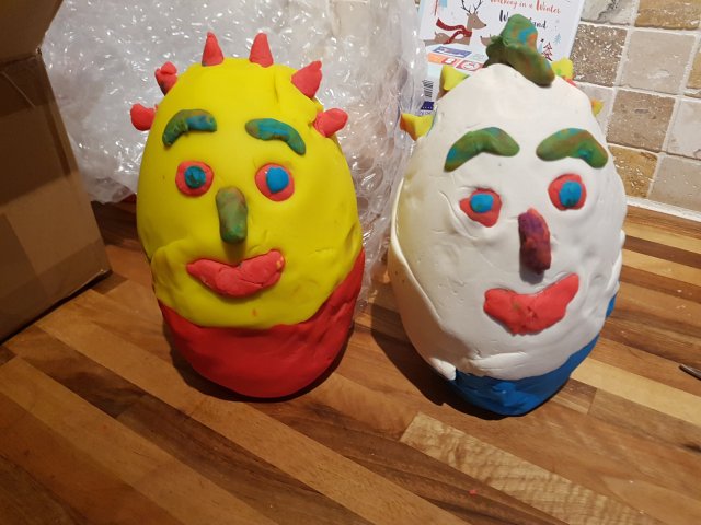 Nem volt hosszú a listájuk, viszont jól kibabrálták a lehetetlent, Benji futógépet, Robin rakéta cipőt szeretne. És mindketten óriási gyurmás meglepetés tojást amit a youtubon néztek ki. Így 24-én még azt is legyártottam..