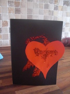 Valentin napra a bölcsiből kaptam tőle kis szív alakú kekszet amit ők sütöttek (és amit állítólag nagyon élvezett), és egy kézzel gyártott kis lapocskát. Első ajándékom tőle. Alig várom a többit!!
