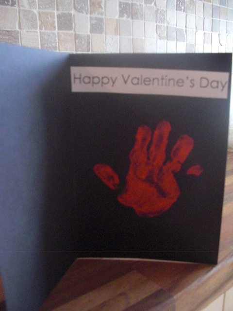 Valentin napra a bölcsiből kaptam tőle kis szív alakú kekszet amit ők sütöttek (és amit állítólag nagyon élvezett), és egy kézzel gyártott kis lapocskát. Első ajándékom tőle. Alig várom a többit!!