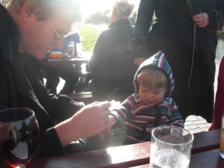 Ahhoz képest, hogy egész héten dolgoztam sikerült egy-pár programot beiktatni a hétbe. Érkezés hétvégéjén kimentünk a Dog Doublet pubhoz, ami a közelünkben van a csatorna parton, nagyon szép idő volt, söröztünk és csodáltuk a tájat, a nagyszülők meg Benjit.