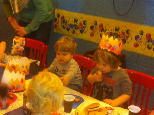 Maxi 3. szülinapját ünnepeltük egy játszóházban, így jól kitombolta magát, volt kis harapnivaló (tündériek voltak, ahogy ültek a kisasztal körül), és kaptak kis ajándékot is amikor eljöttünk. (Az itt divatos goodie bag, volt benne kis lufi, autó, kirakó, csoki) Aranyos ötlet, de hogy én is ilyeneket fogok adni a gyerekeknek majd Benji zsúrján, egyenlőre nem tudom elképzelni. Max kézzel készített dolgot, aminek egyik gyerek sem fog örülni annyira, mint egy Thomas vonatnak 🙂