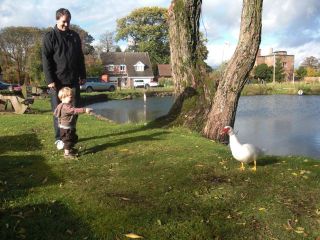 Ez a Rose Inn Baxterley-ben van, nagyon aranyos kis pub, kacsató is van mellette (bár ha este jönnénk ebből nem lehet majd sokat látni), ahol persze Benji megkergette a kacsákat, illetve kergette volna, mert azért megtartotta a kacsa és embergyerek közti illendő távolságot, és érdekes módon most bezzeg fogta Richard kezét, amit amúgy sosem enged….