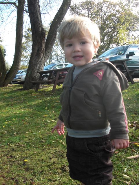 Szombaton a búcsúnapon pedig Trentham-be mentünk, ahol van egy majom erdő. Lekerítettek egy erdőrészt és oda majmokat telepítettek be, egy kis ösvényen lehet körbe kirándulni úgy, hogy a makik ott császkálnak körülöttünk. Benji teljes eksztázisba esett amikor meglátta őket (mostanában nagyon élethű maki makogást tud kiadni ha könyvben vagy tv-ben meglát egy majmot, rögtön mondja, hogy “uh uh uh”. Mondjuk elég kínos, hogy ezt a hangot adta ki amikor egyik újságban egy fekete DJ-re mutatott…). Körbe-körbe szaladgált, és dupla kövér ujjakkal mutatott a majmokra, hogy “uh uh uh”, szaladgált, rugdosta az avart…nagyon élvezte. Mondanom sem kell, hogy aznap este nem nagyon kellett altatni…