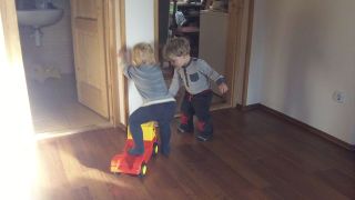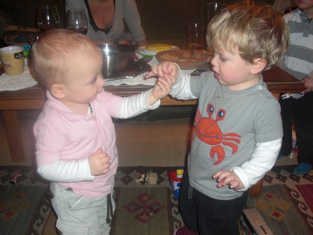 Mostanában elég csak annyit mondani, hogy megyünk meglátogatjuk Zandert (=Alexander, Benji 3.5 éves unokatesója) és transzba esik örömében. Múlt héten is mentünk, mondom neki vedd a cipőd megyünk Zanderhez, erre felemelte mindkét karját az égig kirohant az előszobába (ahol a cipők vannak) és közben ordibálta röhögve, hogy Zander, Zander!!!