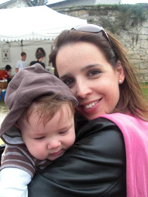 Szombaton szerencsére még nem volt eső így kijutottunk Etyekre a borfesztiválra. Találkoztunk Dórival és szüleivel, és végre készült vele is Benjis kép, már nagyon érett. Jó volt a fesztivál, és is kóstolgattam bort, mert úgyis fejek és nem szoptatok, Benji pedig a kendőből kukucskált, vagy alukált mikor úgy gondolta. A bort kicsit drágán árulták, de szerencsére kaptunk a nagyon fini “pink” borból is, ami nem rosé, csak úgy néz ki.