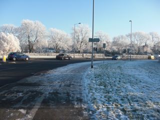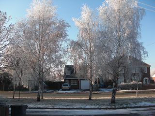 És ilyen a kilátás az ablakunkból és az utcánkban, külön figyelmet érdemel a járdán (illetve fél bicikli úton) található jégpáncél, aminek megint abszurd angol logikátlan története van. Ugye itt precedens jog van, és történt egyszer, hogy valaki megcsúszott egy lelapátolt járdán, és a bíró büntestésre ítélte a ház tulajdonosát vagy önkormányzatot mivel beleszólt a természet rendjébe a lapátolással így közvetve ő felelős az elcsúszásért. Na ettől fogva és büntetéstől félvén szinte senki nem lapátol maga előtt és a járdákon sem az önkormányzat így szinte mindent jégpáncél fed (plusz vegyük hozzá a gyakori angol esőt…). Agyatlanok komolyan mondom….Pont olyan amiért nincsenek szemetesek, az meg azért mert valaki egyszer beledobott egy bombát egy kukába. Ezért úgy döntöttek, hogy mindenhonnan leszerelik a köztéri kukákat, ami miatt pedig minden buszmegálló, park és tér tele van szeméttel és eldobott csokispapírokkal, cigis dobozokkal.