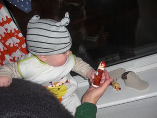 Végre ide értem és meg tudom örökíteni December 6-át, Benji első Mikulását, habár igazából semmit nem fogott belőle még fel, nade mégis neki is jött a magyar Télapó.