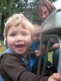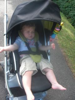 Végülis puszta 1.5 óra után megérkeztünk (kocsival 20 perc), de azért jól éreztük magunk kettecskén is, sokan csodálták Benjit, pláne amikor még kezeket lábakat szétvetve aludt, én pedig büszkén tologattam a napon.
