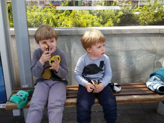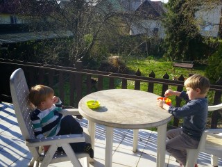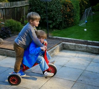 Bicikliben pedig mindketten szuperek. Robin simán megy a nagyobb egyensúlyozós bicajjal, Benjinek pedig kipróbáltuk, hogy megy-e kiskerék nélkül, és szerintem maholnap már menni fog, nagyon ügyes (mondom ezt miután 20x oda-vissza lefutottam vele az utcánkat)