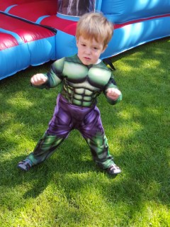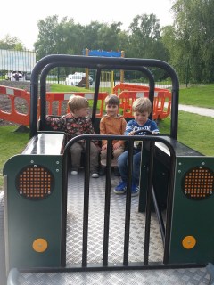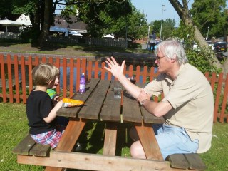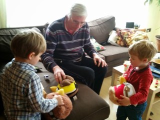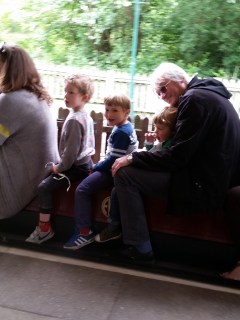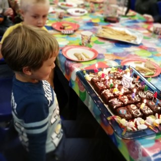 Szerencsés is volt, mert Nagyipapidina is meglátogatott minket, hogy ők is velünk ünnepeljék a szülinapost. A zsúrján megint kisvonatozás volt a Kingsbury parkban, mint a 3. szülinapján, csak most az egész osztályt meghívtuk (bízva abban, hogy legalább a fele nemet mond majd), de kettő gyereket kivéve mind eljöttek, 20 gyerek volt. Még éppenhogy kordában lehetett ennyi gyereket tartani, a két óra hipp-hopp el is telt. Szerintem a szülinapos is boldog volt, angry birds tányérok, az általa kívánt csoki torta (aka brownies szelet), temérdek lufi, Oscar, Kian jóbarátok, asztalnyi ajándék, gumicukor hegyek…mind-mind az ő boldogságát szolgálták.