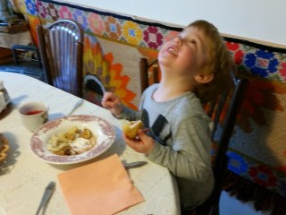 Egyébként nagyon szerencsés, mert a zsúr vasárnap volt, így 15-e hétfőre esett és akkorra is jutott a jóból, még egy torta, otthoni ajándékok, köszöntés “Boldog születésnapot” a Happy Birthday helyett.