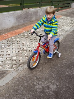 Nem tartott sokáig, két délután gyakoroltunk kis kerék nélkül a bicajozást, egyszercsak ráérzett és tekert-tekert egyedül! Ő akart gyakorolni egyedül, addig amíg nem megy (így mondta), és kb 10 perc után már ment is eyedül. Imádom a kitartásáért, a saját magára büszke mosolyáért! Megállíthatatlan lett az én nagyfiam, még egy mérföldkővel kevesebb…