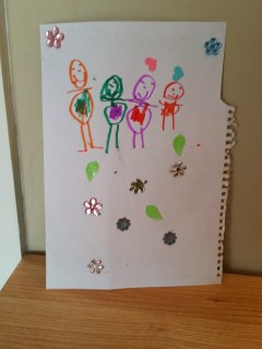 Ahogy ámuldoztam, az egyik fiatal lány a háttérben mondta, hogy “jól írtam? csak a googleból néztem ki”. Annyira aranyos gesztus, annak ellenére, hogy Robin vagy a többi ovis nem tud olvasni, így végülis csak a gondozóknak van odaírva. De akkor is. Valaki vette a fáradtságot és kiguglizott vagy 30-40 szót, kinyomtatta, lelaminálta, mindezt egy darab fél-magyar gyerek miatt.