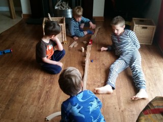 Délután megérkeztek a rokonok, és káosz volt egész másnapig. 8 gyerek, 16 felnőtt, 2 kutya, rengeteg kaja/pia, még több ajándék, még egy kis vonat (amivel kb 5 órán keresztül elvoltak a fiúk)