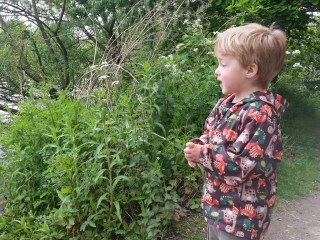 Robin minden meg akar mászni, a kiránduláson is minden farönkre rámutatott, hogy “arra is!”. Bár ha csalánt látott az elijesztette, mondván “szúrós csalán”, bár azért a magyart még gyakorolnia kell, mert néha a “szúrós csalán” helyett “szaros csalánt” mond. 🙂