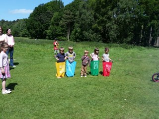 Hétvégén magyar pikniken voltunk, ahol megint szerveztek mindenféle játékot a gyerekeknek, zsákba ugró verseny, pókmászás, futóverseny stb. Meglepő módon most Benji is be akart állni és versenyezni akart. Eddig mindig a szoknyám szélét fogta és