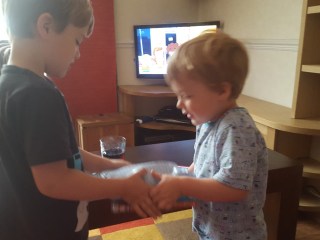Annyira édesek voltak tegnap, pedig ellőre rettegtem, hogy egyedül leszek velük fürdetéskor és este, mert Richard elment focizni. De nem, minden sokkal flottabbul ment, hallgattak rám, Benji segített Robinnak lehúzni a zokniját, együtt kuncogtak rajtam.