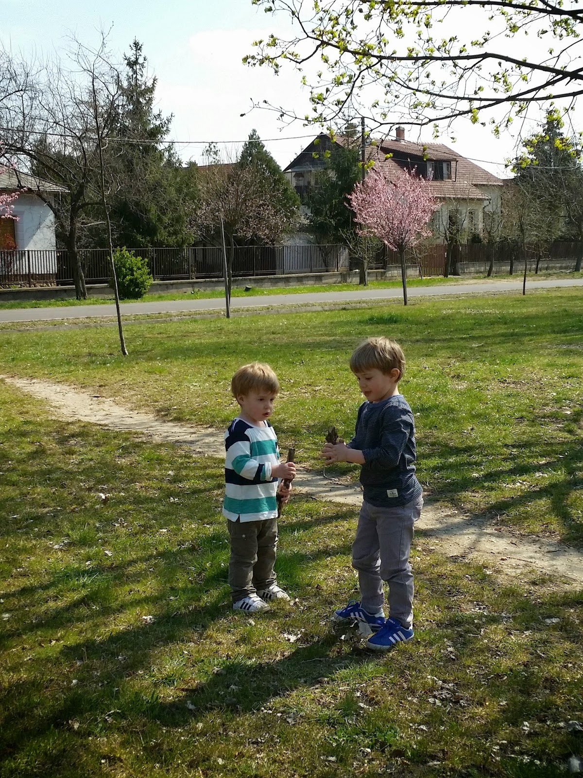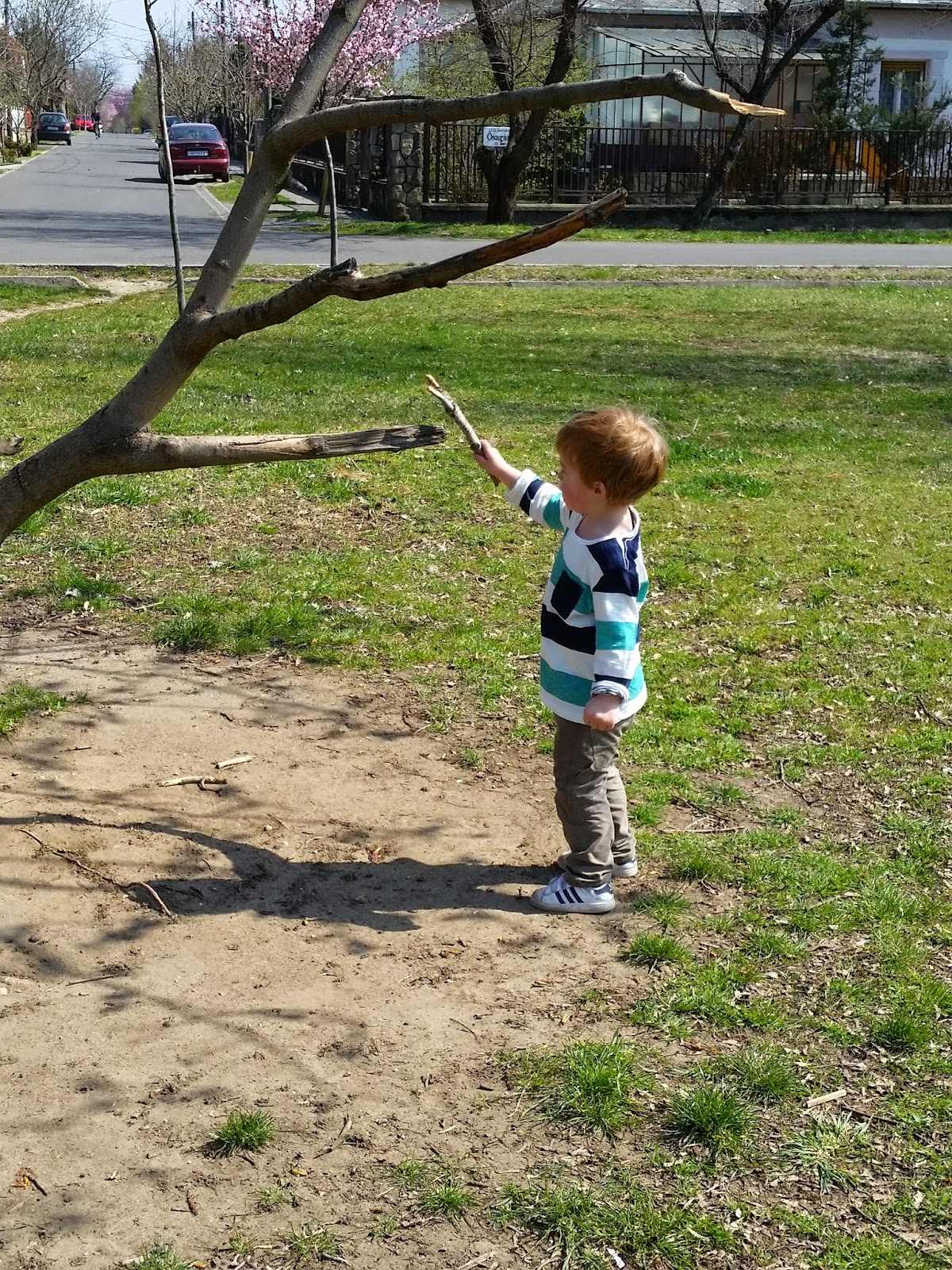 Robin minden meg akar mászni, a kiránduláson is minden farönkre rámutatott, hogy “arra is!”. Bár ha csalánt látott az elijesztette, mondván “szúrós csalán”, bár azért a magyart még gyakorolnia kell, mert néha a “szúrós csalán” helyett “szaros csalánt” mond. 🙂