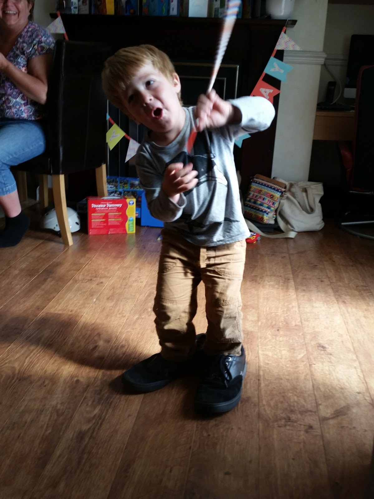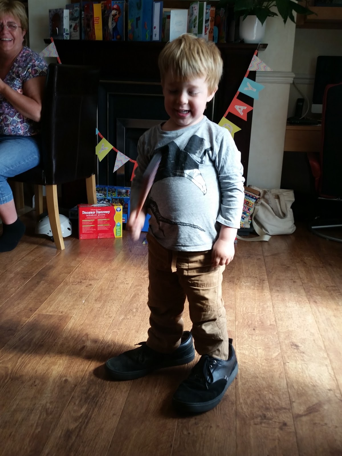 Szerencsés is volt, mert Nagyipapidina is meglátogatott minket, hogy ők is velünk ünnepeljék a szülinapost. A zsúrján megint kisvonatozás volt a Kingsbury parkban, mint a 3. szülinapján, csak most az egész osztályt meghívtuk (bízva abban, hogy legalább a fele nemet mond majd), de kettő gyereket kivéve mind eljöttek, 20 gyerek volt. Még éppenhogy kordában lehetett ennyi gyereket tartani, a két óra hipp-hopp el is telt. Szerintem a szülinapos is boldog volt, angry birds tányérok, az általa kívánt csoki torta (aka brownies szelet), temérdek lufi, Oscar, Kian jóbarátok, asztalnyi ajándék, gumicukor hegyek…mind-mind az ő boldogságát szolgálták.