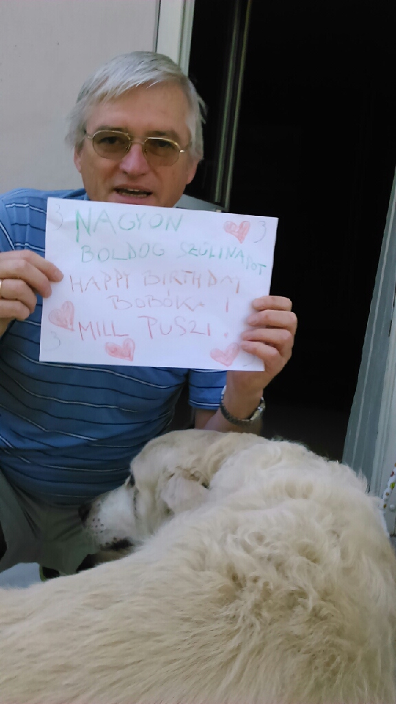Egyébként nagyon szerencsés, mert a zsúr vasárnap volt, így 15-e hétfőre esett és akkorra is jutott a jóból, még egy torta, otthoni ajándékok, köszöntés “Boldog születésnapot” a Happy Birthday helyett.