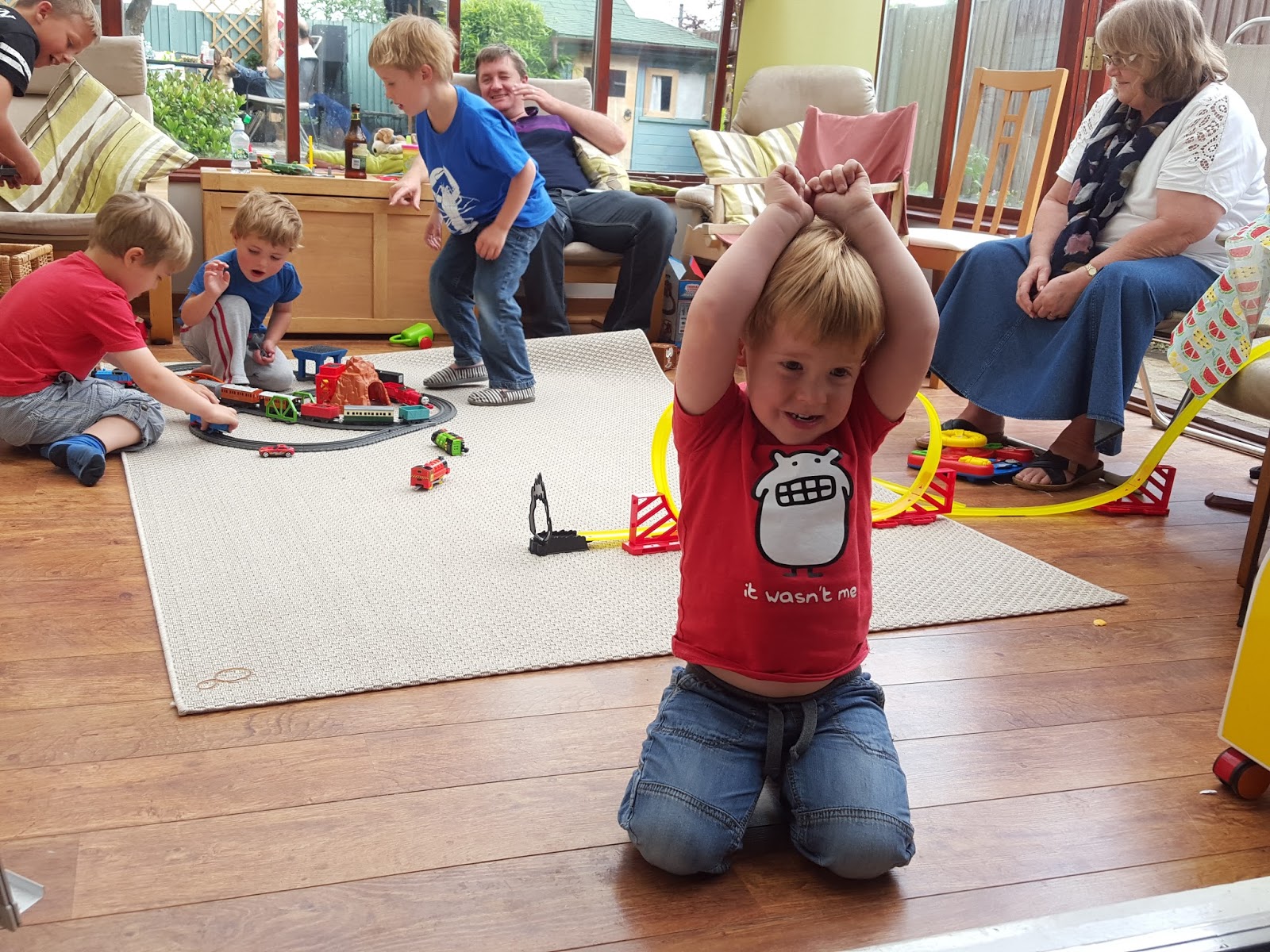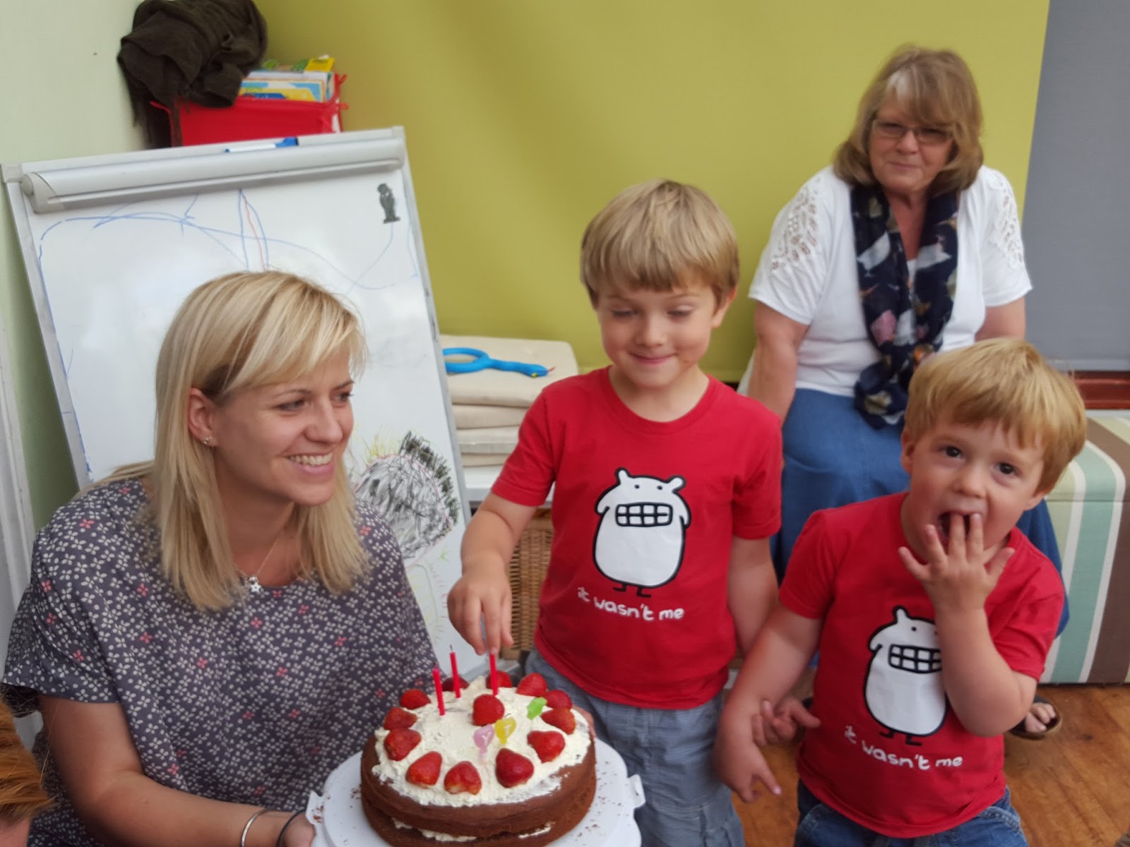 Aznapra hívtuk el Richard unokatesóit, akikkel általában évente egyszer találkozunk mert Anglia különböző területein laknak, és csak ez az egy nap jöhetett szóba, így csaptunk egy szülinapi bulit Robinnak és Dannynek is.