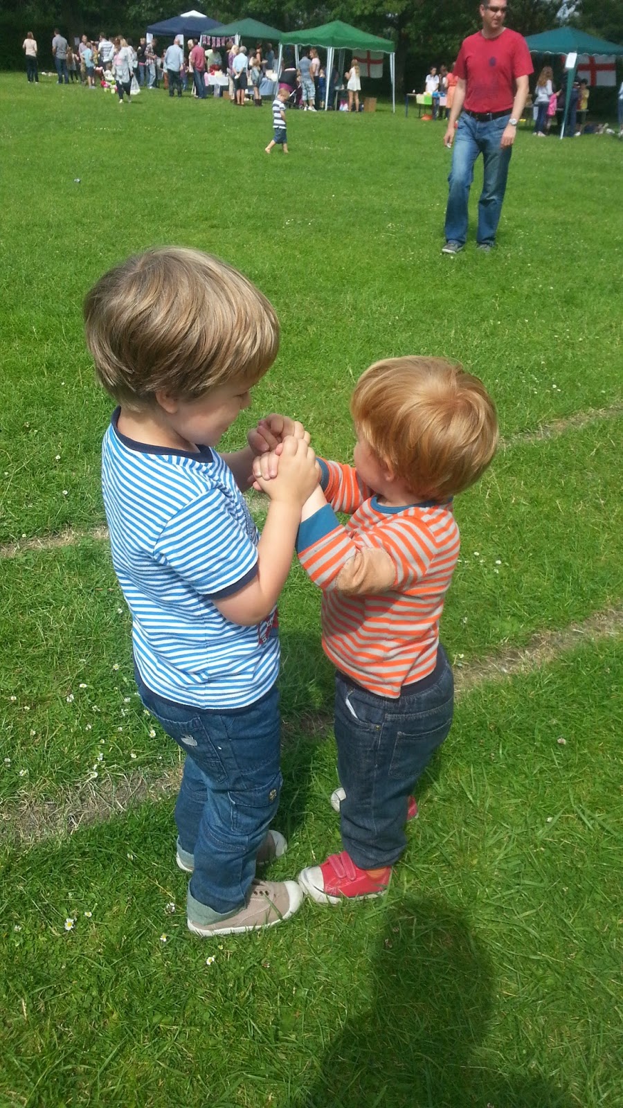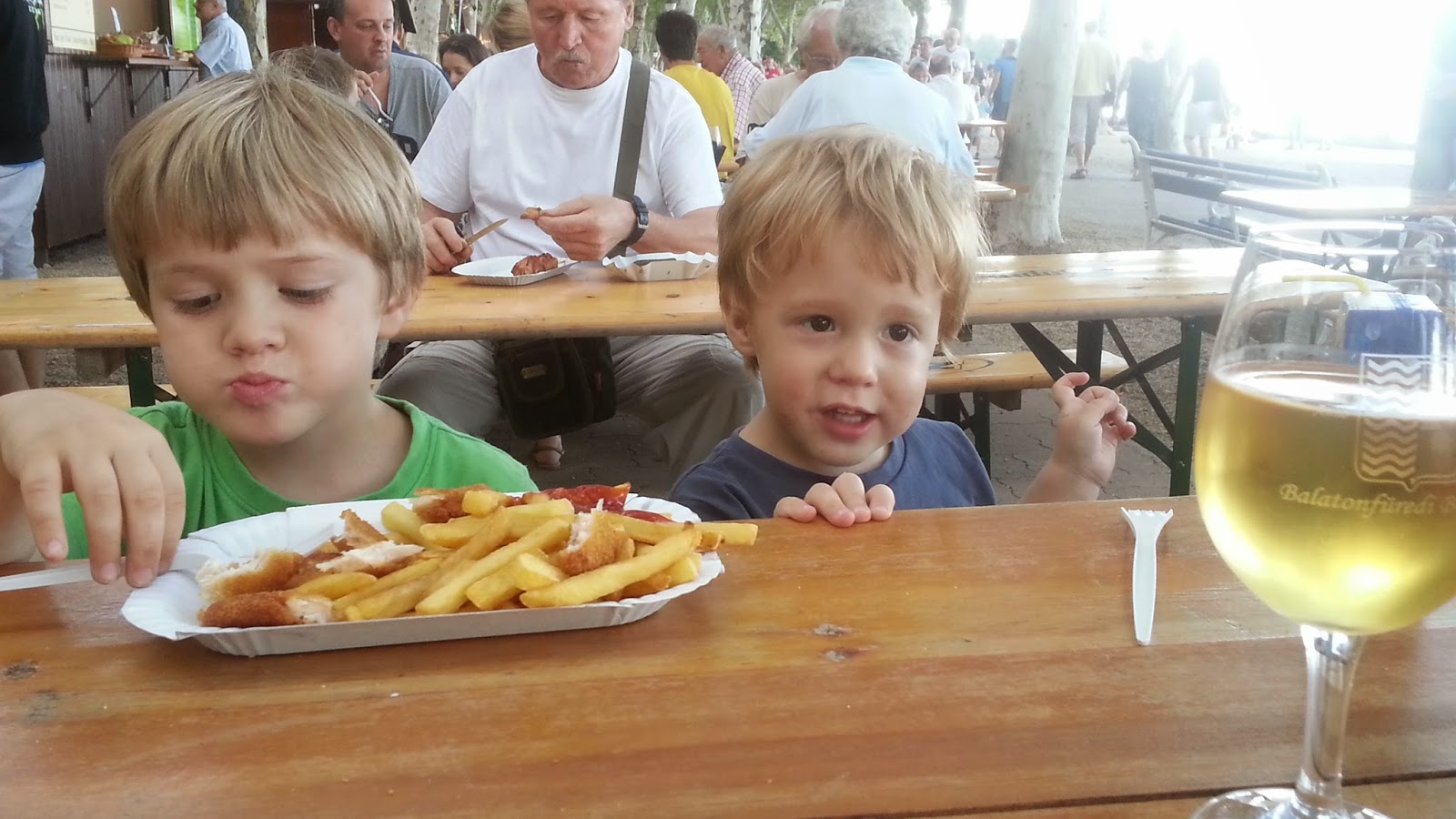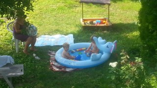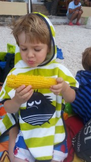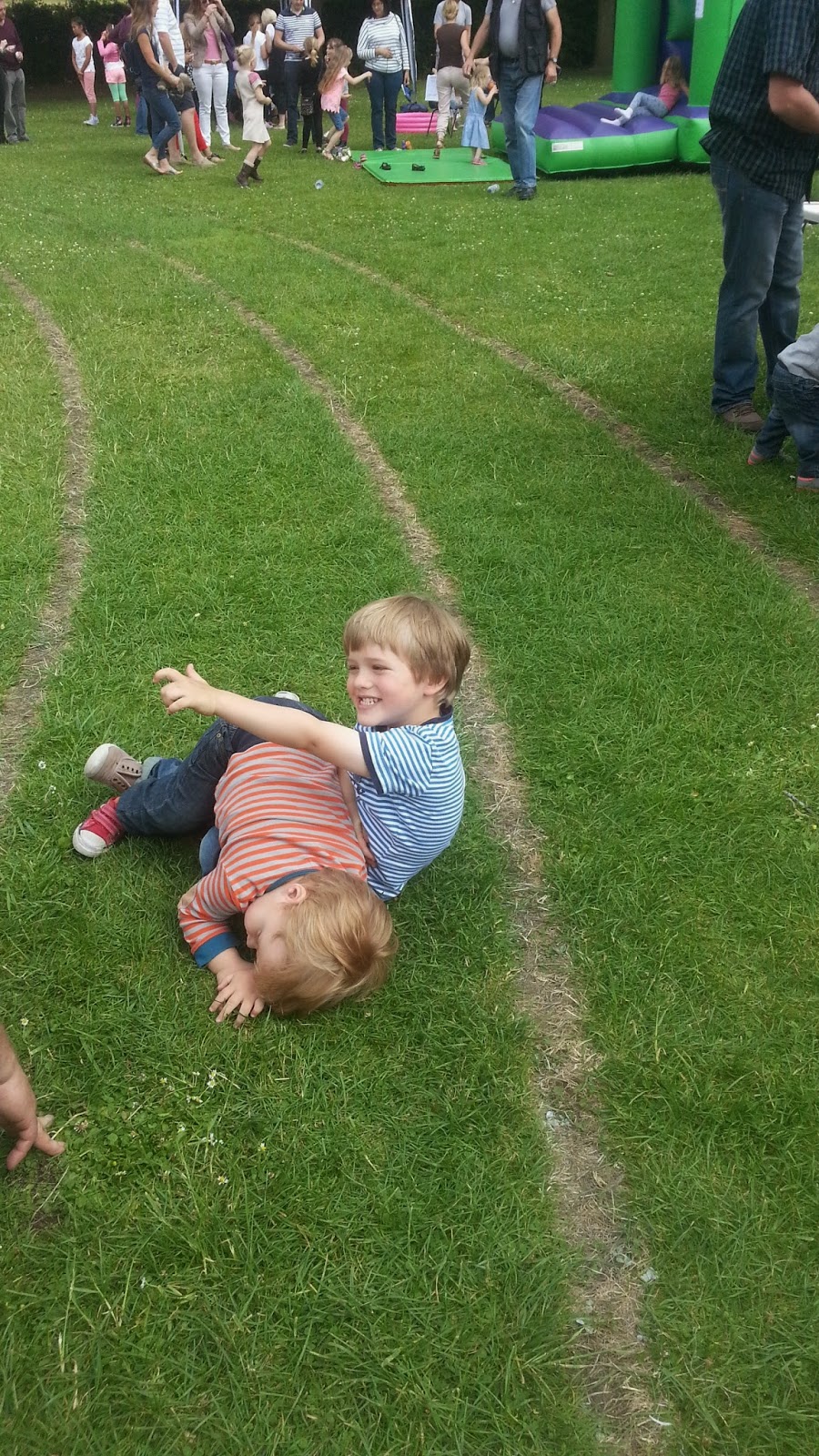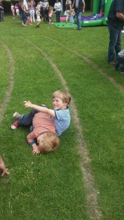 Hétvégén az iskola szervezett kis nyári fesztivál szerűséget, sok kis vetélekdővel, tombolával, oda is elmentünk, hogy szokja, és hátha lesz kis barát. Nem volt, de Robinnal nagyon jól lebohóckodtak.