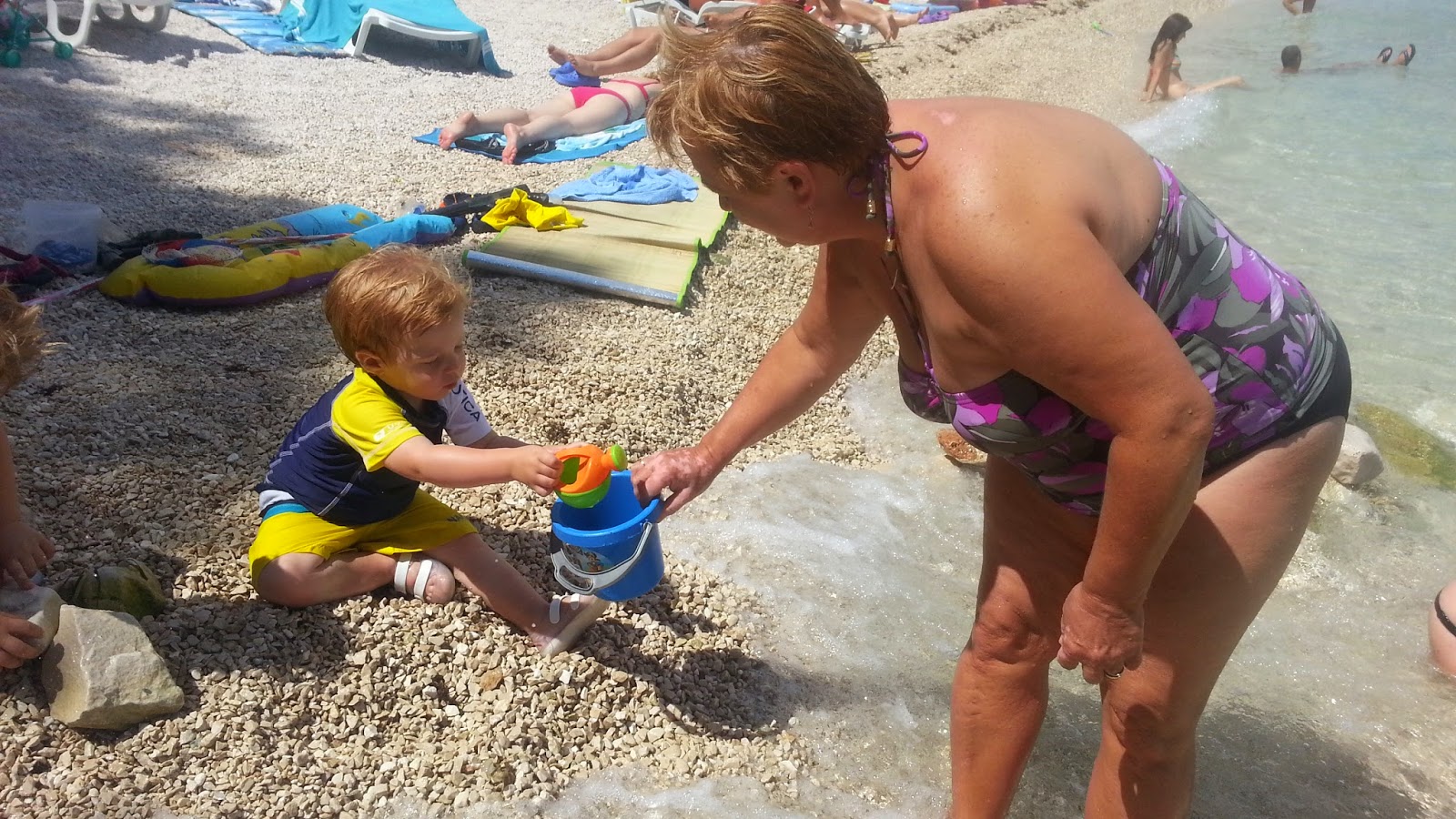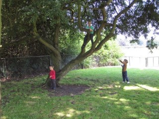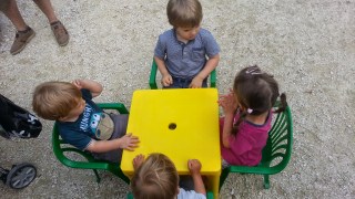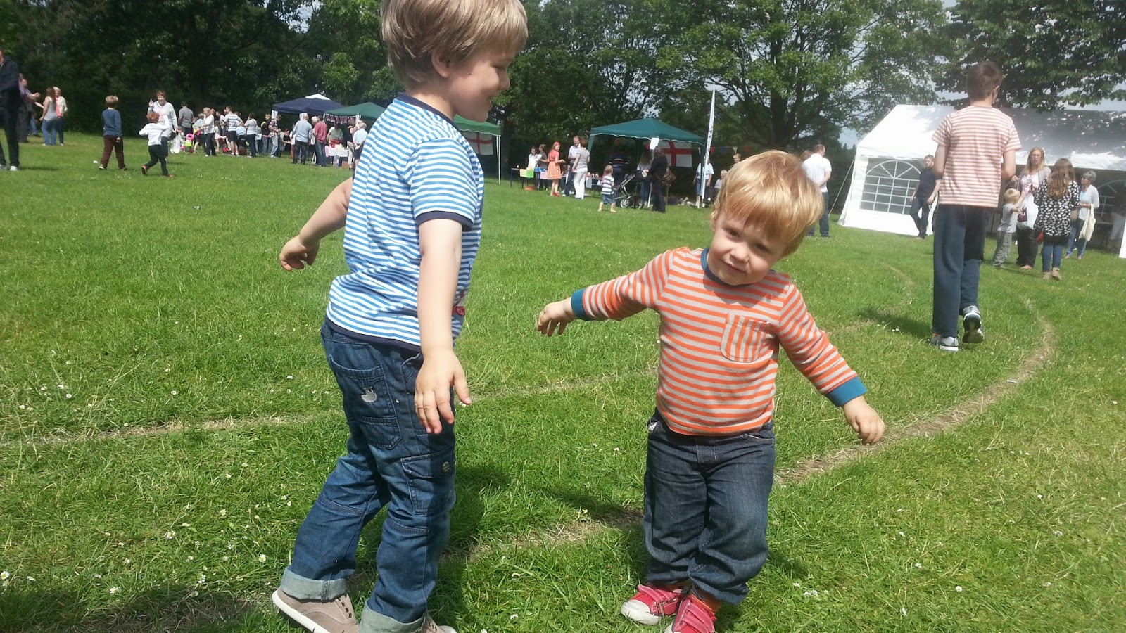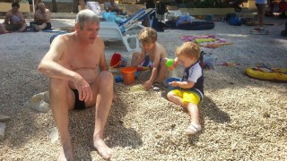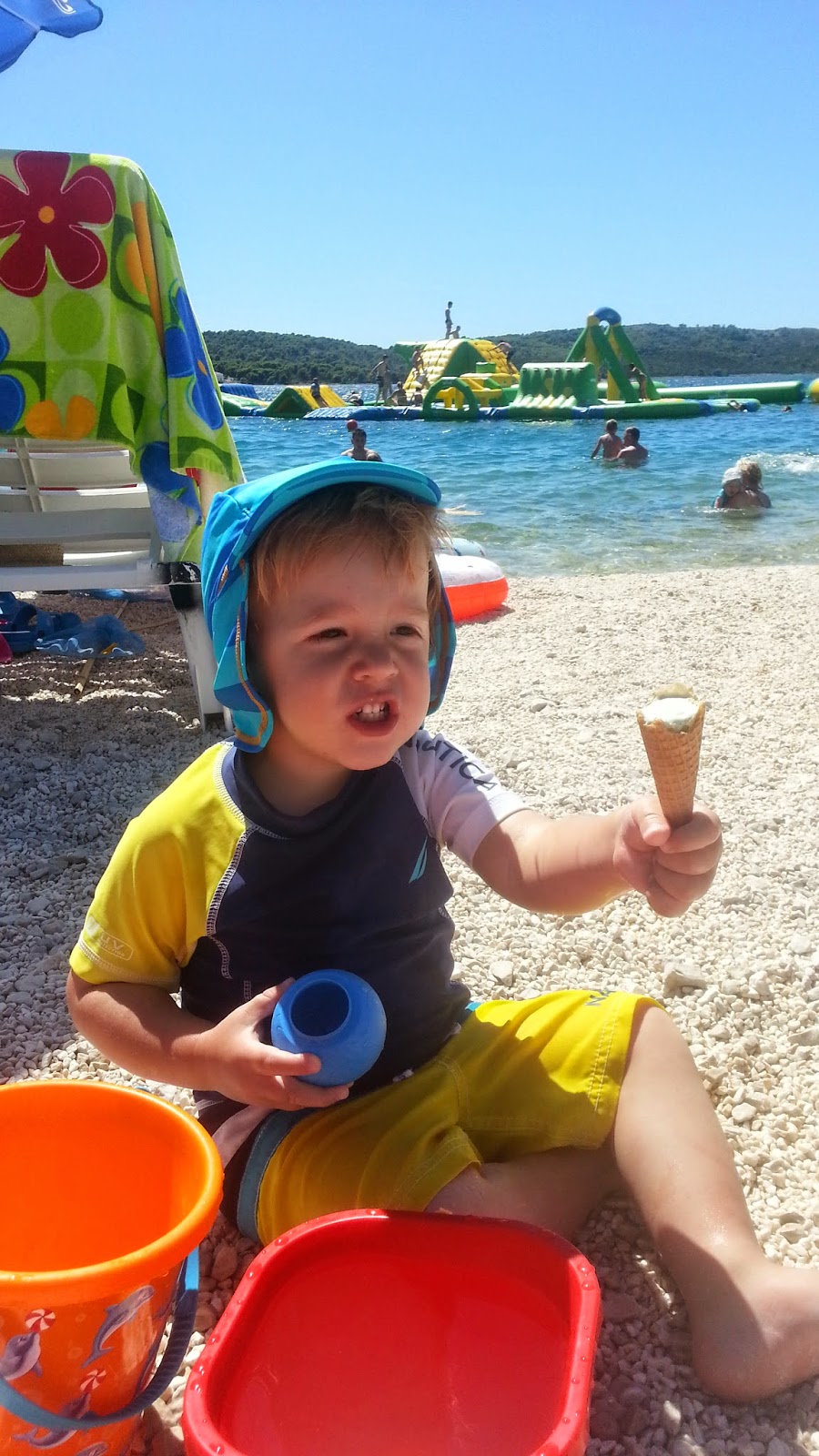 Hétvégén az iskola szervezett kis nyári fesztivál szerűséget, sok kis vetélekdővel, tombolával, oda is elmentünk, hogy szokja, és hátha lesz kis barát. Nem volt, de Robinnal nagyon jól lebohóckodtak.