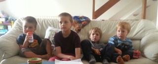 | Csak Shaun the sheep nézéskor lehetett képet készíteni négyőjükről |