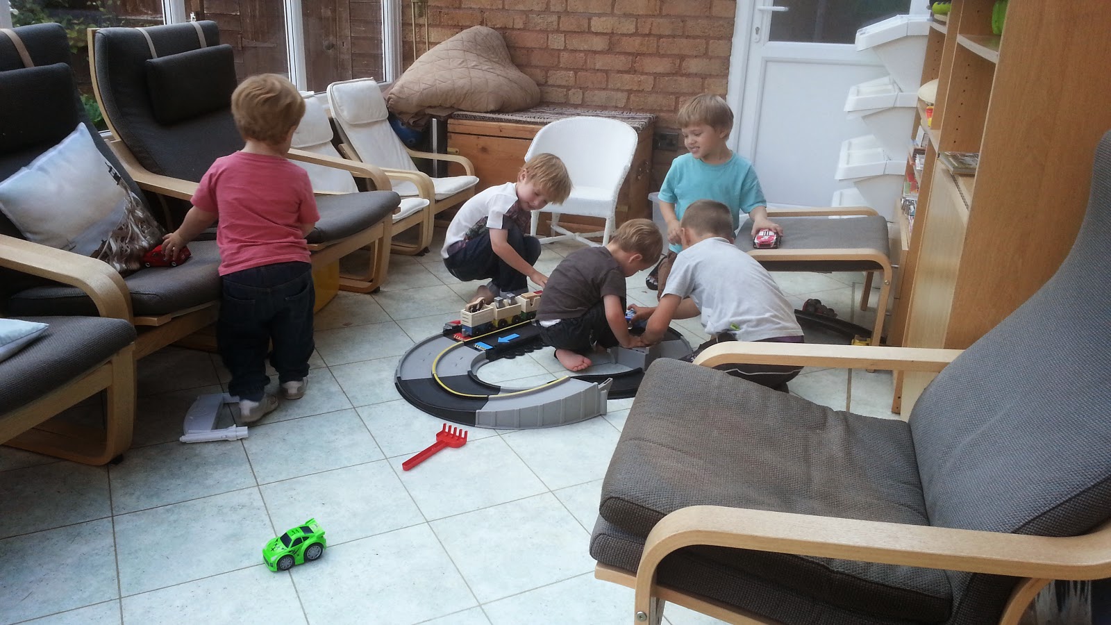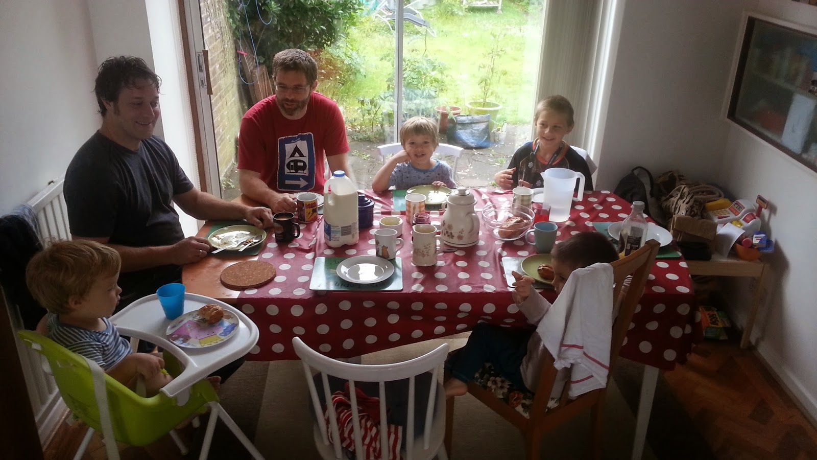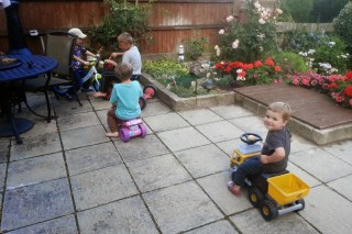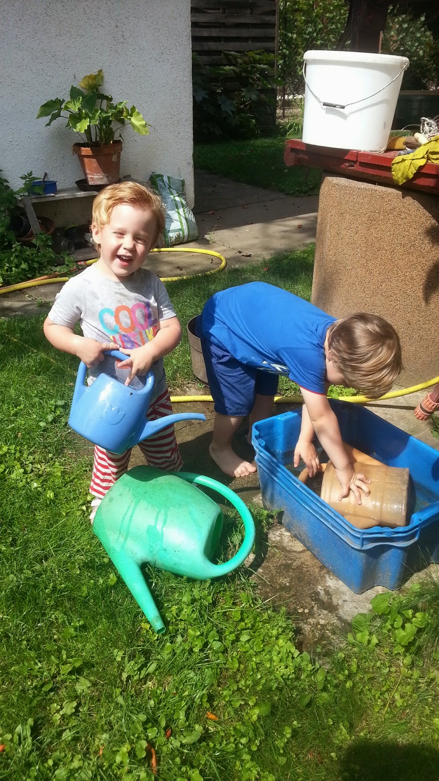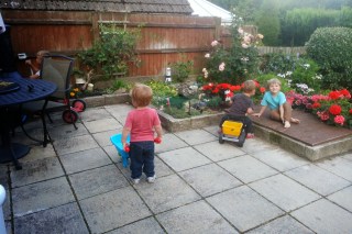Pénteken a szülinapján is így volt, otthonról dolgoztam, tortát sütöttem, hajhúzásokat, harapásokat akadályoztam meg, vacsit csináltam, rendbe vágtam a lakást. Richard hazajött végre ajándékoztunk, Benji segített bontogatni, és nem is volt féltékeny meglepő módon. Robin pedig csak ámuldozott jobbra-balra. Tologathatós fakockákat kapott tőlünk, mert mindent imád tologatni, barátoktól, családtól kapott még rengeteg ajándékot. Köztük volt egy kis mini konyha szett, tányérok, műanyag ételek. Ezt is nagyon szereti, hozza mindig, amit csinált, töltögeti a láthatatlan italokat, keveri a képzeletbeli levest. Nagyon cuki. Lesz helye az új kis kerti házikóban, amit Richard épített (legközelebb erről is hozok képeket).