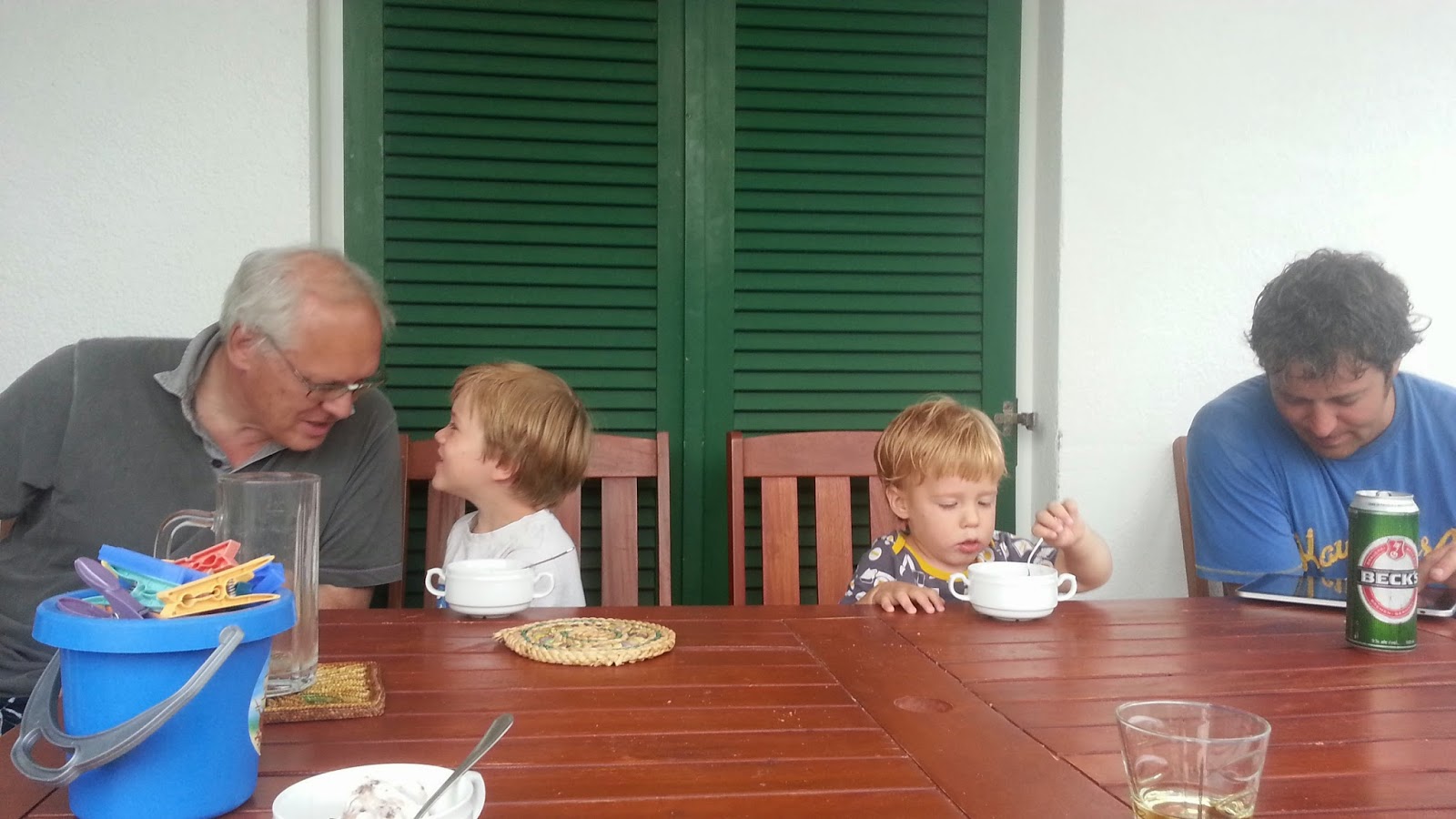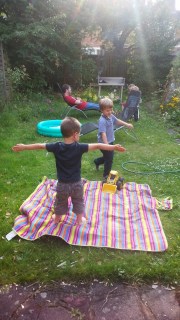 Nagyon élvezzük, hogy most itt is hétágra süt a nap, lehet jönni-menni, kertészkedni (cukkinit termeltem! Én!), gyerekek is főleg a kertben leledzenek, fagyizunk, este nem akarnak aludni, mert még nincs sötét, és hajnalban kukorékolnak, mondván, hogy reggel van és felébredtek (az északi rövid éjszakák átka..)