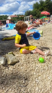 Kis Robinunk is nagyon sokat okosodott mostanában, egyre több szót ismételget (bácsi, pisi, husi, nyuszi, kutyus, még). Az ő intézményi élete egyenlőre heti fél péntek, mert az oviban nincs jelenleg hely, de azt a fél napot is imádja. Azt gondolná az ember, hogy mivel nem rendszeres, ezért mindig hozzá kell szoktatni, de nem, ő megy vidáman, visszanéz, integet, és megy is a kis csoportjába.